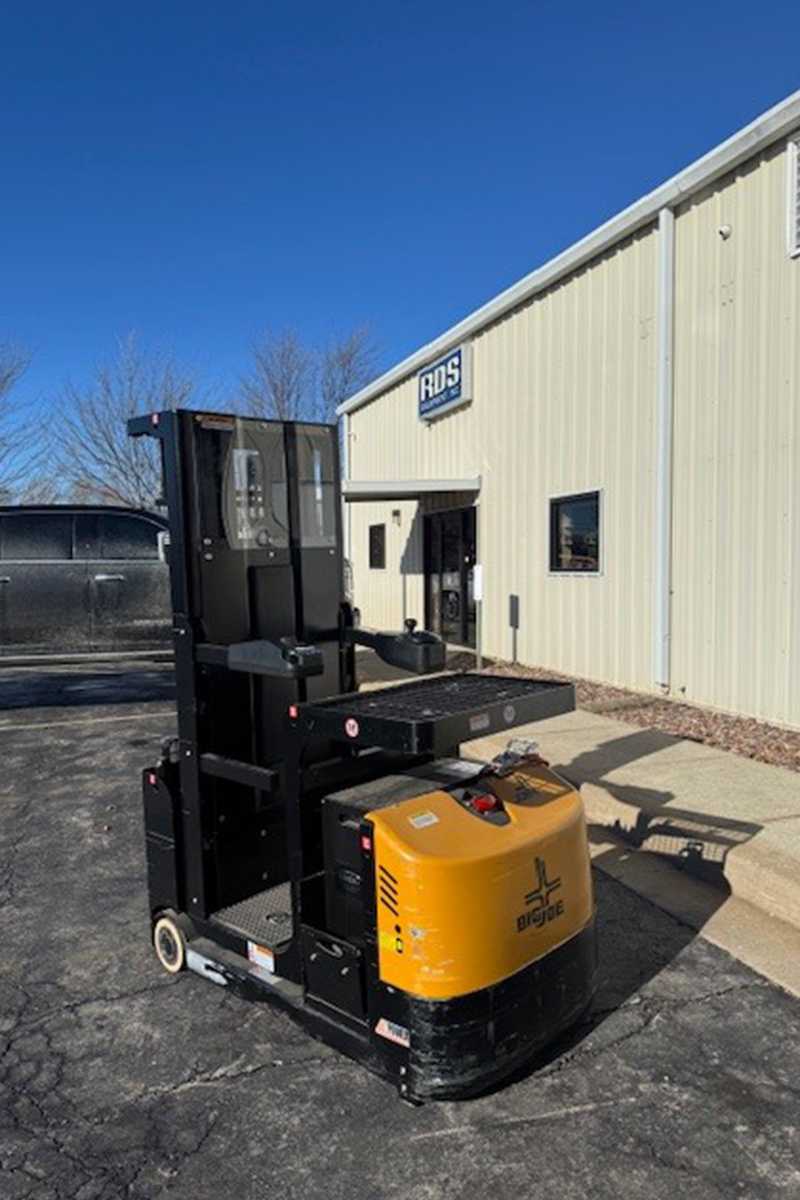 Sales Price $9,500.00 plus tax 24 Volt System, 192” Triple Stage Mast Lift Height, Power Steering, Regenerative Braking, LCD Dashboard Display 300lb Capacity Operator Compartment, 500lb Capacity Front Load Tray, 200lb Capacity Rear Hideaway Tray Call for more information and available Charger Options