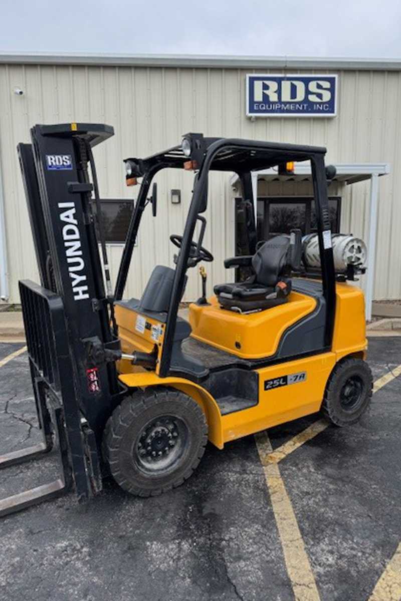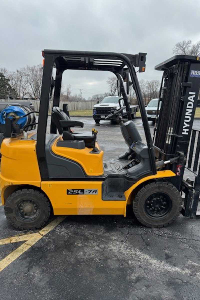 $18,500.00 plus tax 5,000lb Capacity Solid Pneumatic Tired Forklift Approx. 1,347 Hours, 3 Way Valve & Hosing, Cascade Side Shifting Carriage, LPG (less tank), 86” / 185” Triple Stage Mast, Standard 48” Pallet Forks, Grammar Suspension Seat, LED Strobe Light, Rear Flood Light.