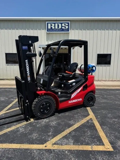 HC FP25 XF2 forklift with 5,000 lb capacity. Pneumatic LPG unit equipped with a 185″ triple stage mast, 4-way hosing, and side shifting carriage. Solid pneumatic tires. 2 units available. Call for more information and pricing.