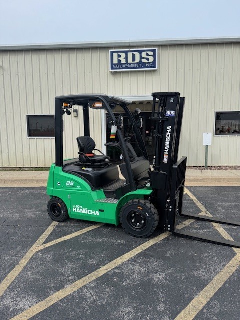 New HC FB25Li Compact Pneumatic Lithium Ion Forklift 5,000lb Capacity Solid Pneumatic Tired. Two Units Available. 80 Volt Lithium Ion Battery, 83”/ 185” Triple Stage Mast, 4 Way Valve & Lever, Cascade Side Shifting Carriage, Standard 48” Pallet Forks, Grammer Suspension Seat, Front LED Headlights & Rear Work Light, Red Zone Awareness Lights, Seatbelt Interlock, Rain Guard Top, Rear Blue Light, Right & Left Mirrors, Rear Grab Handle with Horn. Will come with Match 3 Phase 480 Lithium Ion Charger.Standard 24 Months or 4,000 Hours Machine Warranty. Lithium Ion Battery Warranty 60 Months or 10,000 Hours. Call for Pricing and other Lithium Ion Charger Options. Free Delivery in the Greater Kansas City Area